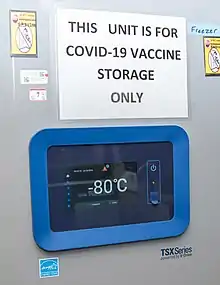 The vaccine is the first COVID‑19 vaccine to be authorized by a stringent regulatory authority for emergency use[56][57] and the first cleared for regular use.[37] In December 2020, the United Kingdom was the first country to authorize its use on an emergency basis.[55] It is authorized for use at some level in the majority of countries.[58][59][60][61] On 23 August 2021, the Pfizer–BioNTech vaccine became the first COVID-19 vaccine to be approved in the United States by the Food and Drug Administration (FDA).[25][28][62] Distribution and storage is a logistical challenge because the vaccine needs to be stored at extremely low temperatures.[63]