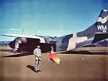 [4] In the north of South Vietnam, the only remaining government enclave was Da Nang.[5] Khiêm flew three missions into and out of Pleiku, evacuating the families of VNAF personnel. The people of Pleiku learned of the evacuation and stormed the airport forcing five C-130's en route from Saigon to turn around before their airlifts were complete. Some C-130's flew bombing missions to destroy the aircraft left behind. They were loaded with 55-gallon drums of napalm, then dropped on VNAF aircraft abandoned on the ramps.
