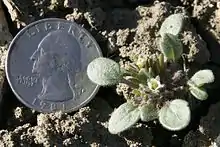 Phacelia submutica is a rare species of flowering plant in the borage family known by the common name De Beque phacelia. It is endemic to Colorado in the United States, where it is limited to the Piceance Basin in two counties. It is threatened by petroleum exploration. It was federally listed as a threatened species of the United States on July 27, 2011, a ruling which took effect on August 26, 2011.[1]
