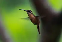 ![]() | Green hermit | Phaethornis guy | southern Central America (Costa Rica and Panama) south to northern South America (north-eastern Venezuela and Trinidad, and the northern Andes of eastern Peru) |