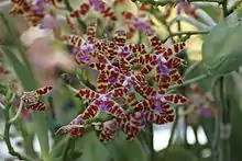 Phalaenopsis bastianii is a species of orchid endemic to the Philippines. Similar in form to a miniature Phalaenopsis lueddemanniana, the colour of the flower is similar to that of Phalaenopsis mariae.