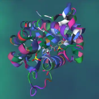 - Mast N, Zheng W, Stout CD, Pikuleva IA (February 2013). "Binding of a cyano- and fluoro-containing drug bicalutamide to cytochrome P450 46A1: unusual features and spectral response". The Journal of Biological Chemistry. 288 (7): 4613–24. doi:10.1074/jbc.M112.438754. PMC 3576067. PMID 23288837.