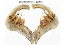 Pharyngeal teeth are teeth in the pharyngeal arch of the throat of cyprinids, suckers, and a number of other fish species otherwise lacking teeth.[1]