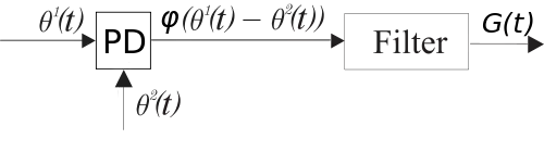 Here and denote high-frequency signals, piecewise differentiable functions , represent waveforms of input signals, denote phases, and denotes the output of the filter. If and satisfy the high frequency conditions (see [3][4]) then phase detector characteristic is calculated in such a way that time-domain model filter output