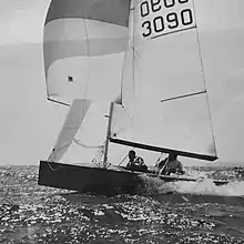 His next step was to design an International 14, "Snoggledog", built by Laurie Smart, with which Morrison and Ray Sellings took second place in the Prince of Wales Cup race in Torbay in 1973, their second year in the class. Again this led to a string of designs for the Fourteens over the next 25 years. See International 14s History