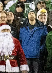 The incident is often used by the media as an example of the negative image surrounding Philadelphia sports fans.[1][5] CBS Sports used the Santa Claus incident as an example for why Philadelphia sports fans are "the absolute worst."[2] ESPN said that with the incident "a city cemented its reputation as the harshest place in sports" and it will go down as "a staple of Philadelphia history."[5] SB Nation has said that "Philadelphia fans throwing snowballs at Santa Claus is a topic that can come up during any Eagles broadcast, and maybe even other professional Philly sports games, too."[10] Some Eagles fans view the incident in an illustrious light as an example of the city's no-nonsense attitude about sports.[11] Regarding the incident, Olivo said "It happened...years ago, you know, time to move on...It went away for a while, but every now and then you hear some guy on TV who only knows Philly for the cheesesteaks and the Liberty Bell talk about the time fans threw snowballs at Santa. It was cool to hear it back then when it went national and Howard Cosell is saying your name on TV, but today when you hear it, it's like, 'Shut up already.' "[9]