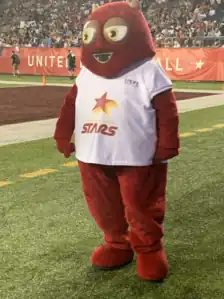 On April 11, 2022, the Stars unveiled their mascot, a monstrous red creature that drew comparisons to other Philadelphia sports mascots Gritty and the Phillie Phanatic.[9][10] The Stars then held a Twitter poll asking fans whether the mascot should be named "Astro", "Cosmo", or "Blob".[11] "Blob" took 65 percent of the vote, and the name was confirmed on April 15.[12] The Stars have offered few details about Blob besides describing him as "out of this world" and noting that he enjoys dancing.[13]