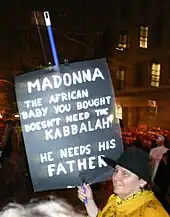 Madonna previously faced criticism for embracing Kabbalah studies because she blended her spiritual belief with life and also charitable efforts, while the spiritual branch itself was labeled as a "money-driven cult".[46][168] UNICEF faced some of these criticisms during a Madonna-hosted fundraising event in 2008, which many said was also used to "promote" the Kabbalah Centre.[169] The proceeds for the events, were reported to be divided between UNICEF and Raising Malawi.[169]
