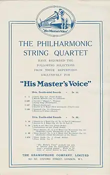 The Philharmonic Quartet made several recordings for the Gramophone Company on the HMV label: