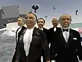 Philip Pocock produced and directed in collaboration with several art and design school students and grads, the ZKM Island YOUniverse in Second Life, with cyber-robotic avatars, avatar-sensing cinema structures, participatory and converging with a Moblog and mobile media sculpture presented at the YOU_ser: The Century of the Consumer exhibition curated by Peter Weibel at ZKM, Karlsruhe. User-generated images are emailed to Second Life mashup cinemas. ZKM Island in Second Life presents vitrine architecture in a globally warmed wasteland, each supermodern structure's components simultaneously screen, wall and window, sensitive to avatar movement and orientation. A Boxing Ring where avatars can get in the ring with six German cultural theorists and philosophy cyber-robotic avatars and punch it out while waxing philosophy, just for fun.[27][28]