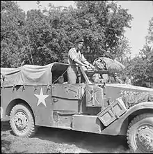 ![]() Major-General "Pip" Roberts, GOC 11th Armoured Division, in his White Scout Car, in Normandy, August 1944. | |