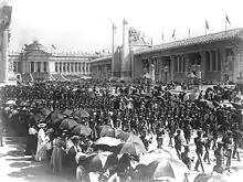 The band's first overseas performance came just three years after its formation when it accompanied the Philippine Scouts to the Louisiana Purchase Exposition of 1904 in St. Louis, Missouri. Four companies of Scouts had been sent to the fair to drill the manual of arms for President Theodore Roosevelt, who requested that the Constabulary Band play one of his favorite marches, The Garryowen, which it obliged as the president "clapped heartily."[5] John Philip Sousa, who was in attendance at the fair, was among those who heard the Philippine Constabulary Band play and remarked, "I am simply amazed. I have rarely heard such playing."[6]