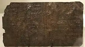 The earliest historical record of local polities and kingdoms is the Laguna Copperplate Inscription, which indirectly refers to the Tagalog polity of Tondo (c. before 900–1589) and two to three other settlements believed to be located somewhere near Tondo, as well as a settlement near Mt. Diwata in Mindanao, and the temple complex of Medang in Java.[82] Although the precise political relationships between these polities is unclear in the text of the inscription, the artifact is usually accepted as evidence of intra- and inter-regional political linkages as early as 900 CE.[82][64][13] By the arrival of the earliest European ethnographers during the 1500s, Tondo was led by the paramount ruler called a "Lakan".[64][13] It had grown into a major trading hub, sharing a monopoly with the Rajahnate of Maynila over the trade of Ming dynasty[83] products throughout the archipelago.[64] This trade was significant enough that the Yongle Emperor appointed a Chinese governor named Ko Ch'a-lao to oversee it.[84][85]