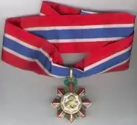 The Philippine Legion of Honor[1] (Filipino: Lehiyong Pandangal ng Pilipinas; Spanish: Legion de Honor Filipino) was established by President Manuel Roxas, through Philippine Army Circular No. 60 dated July 3, 1947. The Philippine Legion of Honor was patterned after the Legion of Merit of the United States of America, and was meant to honor both civilians and members of the military, Filipino or foreign. Originally, like the U.S. Legion of Merit, the Philippine Legion of Honor had four classes, known as degrees, with Legionnaire being the basic rank, and Chief Commander being the highest. With the reform of the Philippine system of orders and decorations in 2003, the Philippine Legion of Honor's classes were renamed "ranks" instead of "degrees", and the ranks expanded.[2][3]