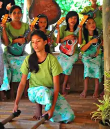 Santos also notes that the majority of these musical performances involve "the participation of the community or audience" and with "dancing and some form of physical movement." The notable exception is in instances of solo playing or small group singing, which do not necessarily involve much physical movement.[1]