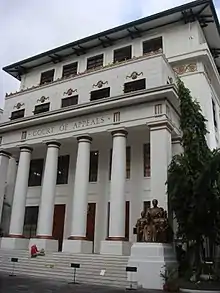 The Court of Appeals (CA) is the appellate court for civil and criminal cases not involving actions related to governing the country, and has original jurisdiction on issuance of writs of mandamus, prohibition, injunction, certiorari, habeas corpus and other auxiliary writs.[17] The court is composed of 68 associate justices headed by a presiding justice. These are divided into 23 divisions of 3 members, 17 of which are based in Manila and hear cases from Luzon, 3 of which are based in Cebu City and hear cases from the Visayas, and 3 which are based in Cagayan de Oro and hear cases from Mindanao.[1]: 40 The court shares some concurrent original jurisdiction with the Supreme Court.[1]: 48 It is the second highest court, and decisions reached by this court can only be appealed to the Supreme Court on questions of law.[17]