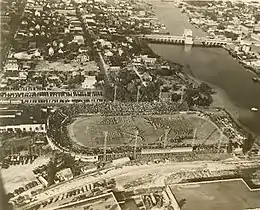 Phillips Field was a medium-sized stadium (maximum capacity approximately 20,000) located on the west bank of the Hillsborough River across from downtown Tampa, immediately adjacent to the University of Tampa. It opened on October 4, 1937, and served as the home for the University of Tampa's football team from 1937 to 1967.[1] The facility was named for local businessman I. W. Phillips, who donated the land to the school so that the Spartans would not have to share nearby Plant Field, which was often unavailable due to its use for many different sports and community events.[2]