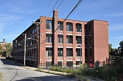 The Philmont Worsted Company Mill is an historic mill building at 685 Social Street in Woonsocket, Rhode Island. The large three-story brick building was erected in 1919 by Joseph and Theofile Guerin, Belgian investors brought to Woonsocket by the promotional activities of Mayor Aram Pothier. Unusually for the Guerins, the mill used the "English system", instead of the French system of their other operations, for the production of worsted wool yarns. The Philmont Company was shuttered by the Great Depression in 1933, but the building was later used by other textile producers until 1955.[2] The building has been converted to residences.