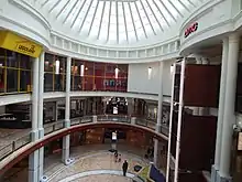 The mall is known for its interior decor, which consists of mahogany walls, marble floors, glass elevators, chandeliers, and a massive, carpeted staircase.