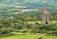 The mine originally extracted copper, the 1850s being the mine's peak production of the metal, with a work force of 130. By the 1860s the copper reserves were diminishing but consultant mining engineer, William West, bought a controlling share in the company and equipped the mine to extract tin in 1864 after samples showed evidence of tin deposits. By 1865 the work force had expanded to 460, continuing to 600 by the 1870s. It used the Liskeard and Caradon Railway to transport the ore away and supply the mine with coal. With the price of tin and copper slumping, the West Phoenix Mine ceased operation in 1898. The final shaft, the Prince of Wales Shaft, was closed in 1914.[1][2]