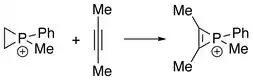 Phosphirenium ions can also be obtained from reaction between phosphiranes and alkynes, where "RClP+" is formally transferred from alkenes to alkynes.[4]