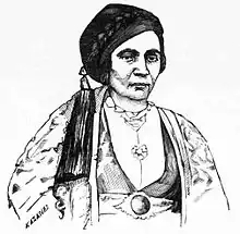 During the reign of King Otto, Photini Kolokotroni became lady in waiting at the royal court and a personal councillor to Queen Amalia.[3][6] With Ioannis Kolokotronis she had seven children: two sons, Theodoros (alias Phalez) and Konstantinos, as well as five daughters, Georgitsa Petimeza, Aikaterini Rodiou, Eleni Zotou, Zoitsa Manotou and Efrosyni, who remained unmarried.