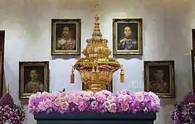 Phra kiao (Thai: พระเกี้ยว [pʰráʔ kî:aw]), the Thai equivalent of the coronet, is a headgear traditionally worn by young princes and princesses. King Chulalongkorn adopted it as his personal emblem, as it coincided with the literal translation of his name.