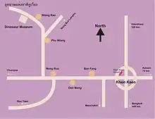 Phu Wiang Dinosaur Museum (Thai: พิพิธภัณฑ์ไดโนเสาร์ภูเวียง) is a geological museum mainly exhibiting fossils.[1] It is under the administration of the Department of Mineral Resources, Ministry of Natural Resources and Environment, of the Royal Thai Government, and situated in the Khok Sanambin public area in Tambon Nai Muang, Wiang Kao district, Khon Kaen province in the northeastern region of Thailand.[2] The museum was constructed with a budget from the Tourism Authority of Thailand under the supervision of the Department of Mineral Resources and comprises an area of 40 acres (160,000 m2). It has been open to the public since 2009.