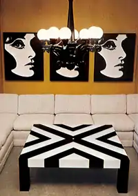 A typical Morris room setting during the mid-1960s would find Pop art accessories and objets d'art commingling with often large or over-scaled furniture. All together, this created a look that defined Morris' style which brought international attention to high-profile residential interiors and hotel projects where her pieces were used. Bright colors, large patterns and bold designs were devices favored by Morris to make a design statement wherever possible. "I'm a designer's designer," she told The Globe and Mail in 1961.,[2] alluding to her role as a source of furnishings to the top interior designers in the industry. Over the course of time, Morris developed a loyal following among interior designers and prominent figures on the Los Angeles arts and culture scene.
