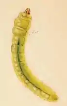 The larvae feed on field maple (Acer campestre) and Tatar maple (Acer tataricum), mining the leaves of their host plant. They create a relatively small, lower surface tentiform mine which is often located under a leaf segment. During development, the mine contracts and this segment usually folds down, covering the mine. The pupa is dark (black to brown) and made in a cocoon that is attached to the floor of the mine.[1][2]