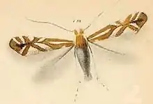 The wingspan is 6–8 mm. Adults are on wing in May and again in August.[2]