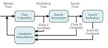 The figure on the right shows a block diagram of these feedback mechanisms. All aerodynamic whistles operate under one of the classes.