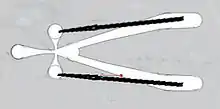 The black lines are the feedback paths. If the fluid is in the lower channel, some fluid is fed back to the jet origin through the black tube and pushes the jet to the upper channel.