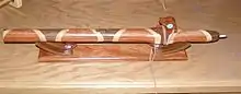 A number of musical instruments, other than the pipe organ, are based on the edge-tone phenomenon, the most common of which are the flute, the piccolo (a small version of the flute), and the recorder. The flute can be blown lateral to the instrument or at the end, as the other ones are. A native end-blown flute is shown in the figure.