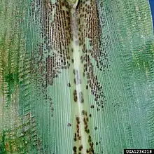 | Maize leaf showing infection by Physoderma maydis | |