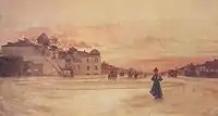 The main building of the Academy of Economic Studies is located to the north of the square.