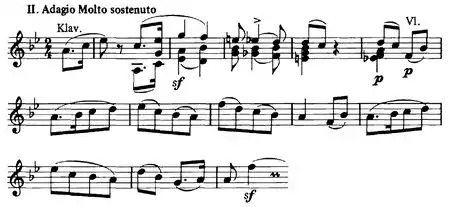 Unusually for Mendelssohn, who often produced his compositions quickly, the Second Piano Concerto took him a great deal of effort.[2] Its genesis dates to the period shortly after his marriage and is first mentioned in a letter to his friend Karl Klingemann while on honeymoon: "aber ein Konzert machte ich mir so gern für England, und kann immer noch nicht dazu kommen. Ich möchte wissen, warum mir das so schwer wird." [but I would like to write a concerto for England, and I can't manage it. I want to know why this is so difficult for me."][3] Mendelssohn's difficulties probably stemmed from a desire to excel in the new work, written expressly for the Birmingham Music Festival, and thereby impress English audiences. The arduousness of the task is attested to by the fact that more autograph sources for the concerto exist than for any other composition he wrote for piano and orchestra.[4] Work on the piece lasted from April through to early September 1837, although his progress was significant enough that he felt confident enough to mention the work to his publisher, Breitkopf & Härtel in early August, having shortly before completed an autograph copy of both the piano part and orchestral score. However, it was not until six weeks after the Birmingham premiere and a second performance at the Gewandhaus in Leipzig, in early November, that Mendelssohn began actively to negotiate publication. He continued to work on the score through that month, delivering a final score to his publishers on December 12.[5] The publisher sent Mendelssohn the proofs of the score on 11 May 1838, which the composer promised to return a copied version of shortly thereafter. The work was published later that summer, although Mendelssohn was unhappy with the result, complaining, among other matters, that the title page was in French rather than German.[6]