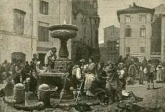 ![]() Piazza Montanara in an engraving by Giuseppe Vasi (1752). | |