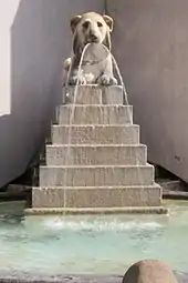 Fountains by Giovanni Ceccarini (1822–23), with matching compositions of a central figure flanked by two attendant figures, stand on each side of the piazza to the east and west, flanked by neoclassical statues of The Seasons (1828).[7] The Fontana del Nettuno (Fountain of Neptune) [8] stands on the west side, Neptune with his trident is accompanied by two tritons. Rome between the Tiber and the Aniene on the east side, against the steep slope of the Pincio, represents the terminal mostra of the aqueduct. Dea Roma armed with lance and helmet, and in front is the she-wolf feeding Romulus and Remus.[6]