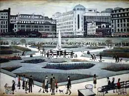 Piccadilly Gardens is a 1954 oil painting by the English artist L. S. Lowry. It depicts Piccadilly Gardens, a large garden square in Manchester city centre, north-west England. The painting hangs in the Manchester Art Gallery on nearby Mosley Street.[1][2][3]