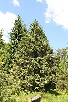 Picea schrenkiana, Schrenk's spruce,[1] or Asian spruce,[1] is a spruce native to the Tian Shan mountains of Central Asia (in Kazakhstan and Kyrgyzstan) and also to western China (Xinjiang).[1] It grows at elevations of 1,200–3,500 m (3,900–11,500 ft),[3] usually in pure forests, sometimes mixed with the Tien Shan variety of Siberian fir (Abies sibirica var. semenovii). Its name was given in honour of Alexander von Schrenk (1816–1876).
