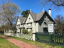 In 1841 the front facade was reworked in the Gothic Revival style, with the facade gables probably dating from this time. Many of the house's external features date from this alteration, including the roof finials, round windows in the gables, cornice brackets, and exterior entry porch. Family records also suggest that a passageway was cut through the chimney stack at this time, and that the exterior chimney was remodeled to today's columnar style at this time. The Gothic-style fence with its cut-outs and obelisk finials was also added in this renovation. In 1904 a two-story ell was added to the rear. In 1948, Boston architect Gordon Robb carried out interior restoration work to reintroduce more Colonial Revival features.