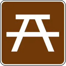 The most traditional and common picnic table shape is rectangular, with a straight bench on each of the rectangle's two long edges. In the United States, this sort of rectangular picnic table is so closely associated with picnicking that it is the symbol used for picnic sites and picnic shelters under the Manual on Uniform Traffic Control Devices.[16] However, many different shapes, including circular, hexagonal and octagonal designs, have also been used for picnic tables. Circular and octagonal picnic tables first became popular in California in the early 20th century because of their superior properties for playing card games.[3]