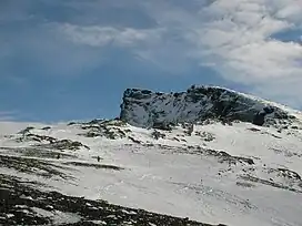 Veleta (from the Arab word "Balata", meaning cliff) or Pico del Veleta is the second highest peak of the Iberian peninsula and the Sierra Nevada. Its height is given variously as 3,394 metres (11,135 ft),[1] 3,396 metres (11,142 ft)[2] and 3,398 metres (11,148 ft).[3]