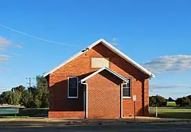Federal Hall was established in 1900, later known as Picola Memorial Hall and Picola Public Hall. It has been burnt down and rebuilt twice: on 19 August 1936, leading the wooden building to be replaced by a brick structure, and on 12 April 1939.[9][10][11] Water was carted from Broken Creek until a town dam and water tank was constructed in 1950.[3] A book about the history of the hall was written by Jeanette Holland in 2010.[12]