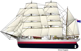 During the early 1990s, Daniel Moreland acquired the ship while seeking a vessel to convert to a barque.[8] With the help of a small crew he brought her across the Atlantic Ocean, eventually ending up in Lunenburg, Nova Scotia where she began her multimillion-dollar refit.[7]