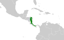 The rufous-winged woodpecker is found from eastern Honduras through Nicaragua and Costa Rica into western Panama. It inhabits humid forest but sometimes ventures to isolated large trees in open areas nearby. In elevation it occurs up to 750 m (2,500 ft) on the Caribbean side and to 900 m (3,000 ft) on the Pacific side.[4]