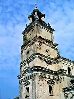 Approximately 100 ethnic Poles were murdered in the monastery, and additional 500 were killed in the town of Pidkamen itself. In the nearby village of Palikrowy, 365 Poles were killed. Armed Ukrainian groups destroyed the monastery, stealing all the valuables, except for the monastery's crowned icon.[5] Tadeusz Piotrowski who based his findings on the Home Army or German Police sources, estimates that the number of victims in the monastery and adjacent villages numbered 1000.[4] Among the survivors was the renowned writer and painter, Leopold Buczkowski.[7]