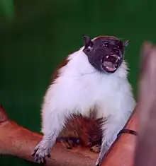 The pied tamarin (Saguinus bicolor), sometimes referred to as the Brazilian bare-faced tamarin, is a Critically Endangered primate species found in a restricted area of the Brazilian Amazon Rainforest. It was named the mascot of Manaus, Brazil in 2005.[3][5] The species is endangered due to the increasing size of the city of Manaus which is encroaching on their native habitat.