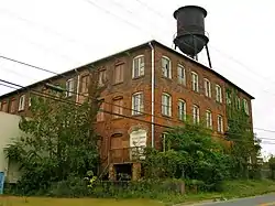 Piedmont Buggy Factory, also known as Bearskin Cotton Mills and Monroe Cotton Mills, is a historic building located at Monroe, Union County, North Carolina. It was built in 1910, and is a three-story, rectangular brick building with a shallow pitched gable roof. The brick is in six distinct shades of red. Also on the property are the contributing late-1910s one-story brick boiler house and a steel water tower (c. 1910). Originally built as a buggy factory, in the late 1910s the factory was converted to textile production and renamed the Bearskin Cotton Mills. The facility remained in operation through 1956.[2]